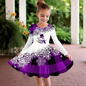 Meisjes 3D Grafisch Sneeuwvlok Jurk Sneeuwvlokjurk Lange mouw Zomer Lente Vakantie Dagelijks Feestdagen Prinses Mooi Zoet Kinderen 4-12 jaar Casual jurk A lijn jurk Tot de knie Normale pasvorm