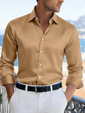 Voor heren Overhemd Satijnen overhemd Normaal shirt Overhemd met knopen Galashirt Effen Feest Bruiloft Licht Blauw Zwart Wit Koningsblauw Lange mouw Revers Lente Alle seizoenen Kleding Puur