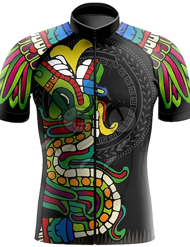 Voor heren Wielrenshirt Draak Grappig Korte mouw Fietsen Shirt Kleding Bovenlichaam met 3 achterzakken Bergracen Wegwielrennen Sneldrogend Reflecterende strips Achterzak Vochtregelerend Sport Zwart
