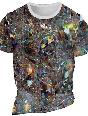 Voor heren Kleurrijk Grafisch Diamant T-shirt Korte mouw T-shirt 3D-afdrukken Strakke ronde hals Overhemd Dagelijks Ontwerper Retro vintage Carnaval Buitensporten Feestdagen Lichtgroen Rood Paars