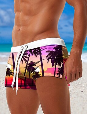 Voor heren Kokosnootboom Natuur & Landschappen Zwemshorts Boardshorts Zwembroek Medium Taille 3D-print Hawaii Surfen Feestdagen Strand Trekkoord met Mesh-voering Elastische taille Ontwerper Kleding