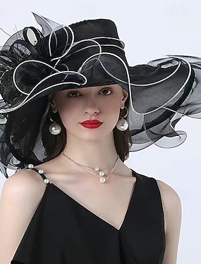 Elegante organza derbyhoed voor dames met brede rand, zonnehoeden voor bruiloften, theekransjes en fascinatorhoeden.