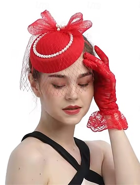 Hoofdtooi Stof Fedorahoed Bruiloft Teaparty Paardenrace cocktail Elegant Vintage Met Nep Parel Tule Helm Hoofddeksels