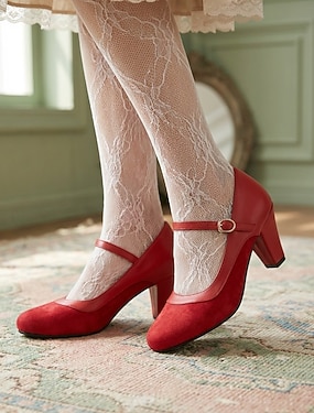 Vintage rode Mary Jane pumps in jaren 50-stijl voor dames - elegante pumps met ronde neus, blokhak en enkelbandje voor retrofeesten en bruiloften. &klassieke pin-up outfits
