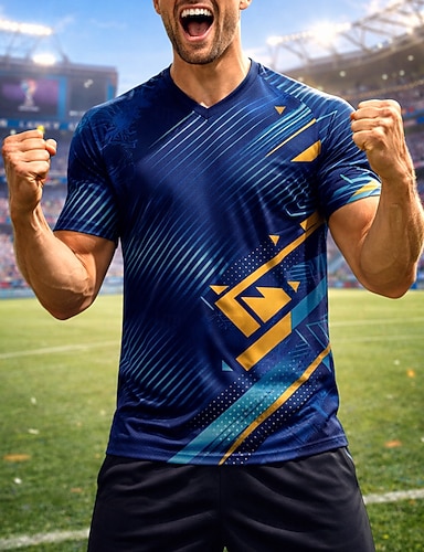 Uniseks Geometrisch Voetbalzomer Wereldwijde wedstrijd Truien Hardloopshirt Zomer Kleurenblok Korte mouw UPF 50 Sneldrogend Ademend Informeel Hardlopen Joggen Fitness blauw Sportkleding Sportkleding