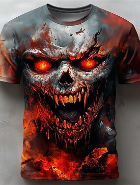 Halloween Voor heren Doodskoppen 3D Vlam T-shirt Korte mouw T-shirt 3D-afdrukken Strakke ronde hals Overhemd overdreven Ontwerper Verschrikking Feest Straat Casual Zwart Wit Rood Zomer Lente Alle