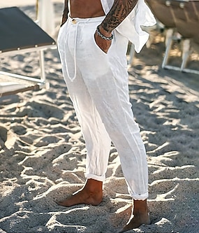 Voor heren Linnen broek Broek Zomerbroek Strandbroeken Trekkoord Voorvak Effen Comfort Ademend Casual Dagelijks Feestdagen Modieus Basic Zwart Wit
