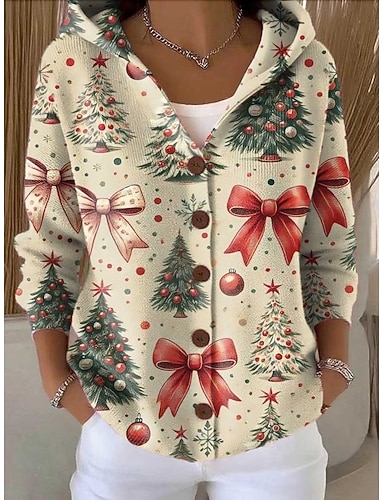 Dames Trui Vest Vakantie Modieus Streetwear Kerstboom Geribd Capuchon Zak Gebreid Afdrukken Lange mouw Normale tops breien Kerstmis Buiten Dagelijks Lichtgroen Rood Herfst Winter