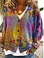 Dames Trui Vest Modieus Streetwear Dagelijks dier Geribd V-hals Gebreid Afdrukken Lange mouw Normale tops breien Feestdagen Uitgaan Weekend Geel Herfst Winter