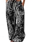 Dames Breed Been Broeken Recht Vintage Modieus Streetwear Volledige lengte Medium Taille Bloemig Effen Trekkoord Zak Breed Been Comfort Ademend Zacht Micro-elastisch Buiten Vakantie Dagelijks