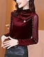 Dames Fluweel Blouse Geklede topjes Effen Elegant Vintage Dames Halve mouw Hoge nek Normale tops Werk Dagelijks Feestdagen Met ruches Sierstenen Netstof Zwart Rood blauw Paars Herfst Winter