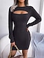Dames Mini-jurk Trui-jurk Modieus Modern Kantoor Dagelijks Feestdagen Normale pasvorm Kleurenblok Lange mouw Strakke ronde hals Zwart Wijn Khaki Lente Herfst Winter