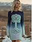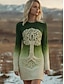 Dames Halflange jurk Casual jurk Winter jurk Etnische jurk Swingjurk Vakantie Casual Bescheiden Formeel Buiten Winter jurk Normale pasvorm Kleurgradatie Lange mouw Ronde hals Groen Herfst Winter