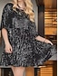 Dames Mini-jurk Witte jurk Jurken van katoen en linnen Zwarte jurk Casual jurk Basic Modern Dagelijks Weekend Ruim Passend Effen 3/4 mouw V-hals Zwart Wit Rode roos Zomer Lente