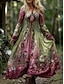 Vrouwen Maxi Jurk A-Lijn Jurk Fit En Flare Jurk Vintage Boho Date Regular Fit Bloem Graphic Lange Mouw V Hals Groen Lente Herfst Winter