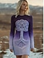 Dames Halflange jurk Casual jurk Winter jurk Etnische jurk Swingjurk Vakantie Casual Bescheiden Formeel Buiten Winter jurk Normale pasvorm Bloemig Lange mouw Strakke ronde hals Paars Herfst Winter