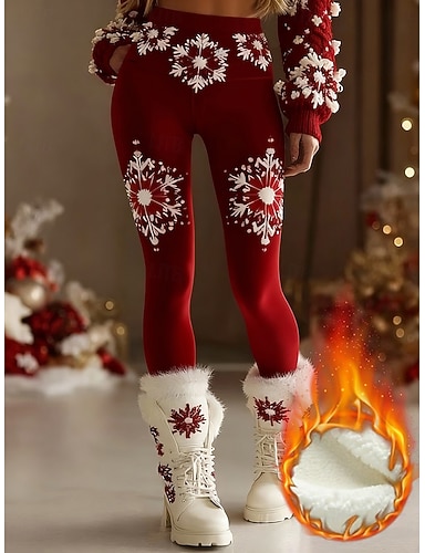 Dames Fleece broek Leggings Vakantie Streetwear Casual Volledige lengte Hoge taillePantsKerstmis Geometrisch Sneeuwvlok Thermisch Warm Comfortabel verdikken Rekbaar Buiten Vakantie Straat Wijn Lente
