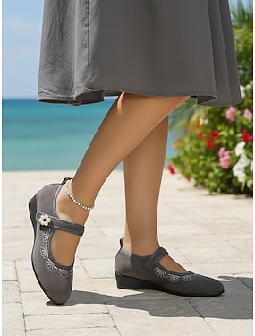Damesschoenen in blauw met borduursel - casual platte schoenen met klittenbandsluiting voor volwassen vrouwen, geschikt voor dagelijks gebruik, werk, wandelen en reizen.
