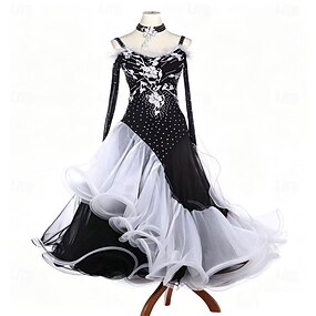 Ballroomdansen Kleding Strass Plooien Tule Dames Feest Opleiding Prestatie Lange mouw Hoog Elastaan Polyester