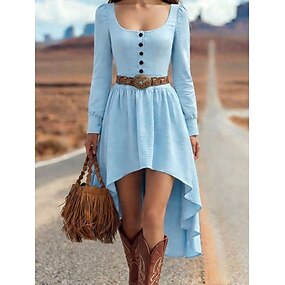 Dames Mini-jurk Vintage Jurk Casual jurk Boho-jurk Elegant Modieus Modern Dagelijks Buiten Vakantie Normale pasvorm Effen Lange mouw Vierkante hals karamel Licht Blauw Zomer Lente Herfst