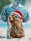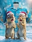 Kerstmis Voor heren dier Eekhoorn grappige kerst Overhemd Cubaans overhemd Korte mouw Grappig Feestdagen Streetwear Lente Herfst Mandarijn Kraag 3D-afdrukken Overhemden met knoopjes Licht Blauw blauw