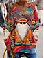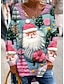 Kerstmis Dames T-shirt Grafisch Kerstman Kerstmis Elegant Vintage Modieus Lange mouw V-hals Normale tops Dagelijks Weekend Afdrukken Blozend Roze Rood Groen Lente Herfst Winter