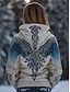 Dames hoodie met Vikingvleugels, grafische print, geometrische tribale vintage casual boho stijl, lange mouwen, capuchon, normale pasvorm, casual streetstyle, patchworkprint, voorzak, blauw, lente,