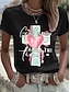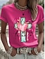 Dames T-shirt Afdrukken dier Brief Casual Korte mouw Ronde hals Normale tops Dagelijks Blozend Roze Zomer