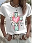 Dames T-shirt Afdrukken Zonnebloem Madeliefje Brief Modieus Basic Korte mouw Strakke ronde hals Normale tops Dagelijks Weekend Blozend Roze Groen Khaki Zomer