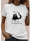 Dames T-shirt Afdrukken Kat Brief Tekst Basic Grappig Korte mouw Ronde hals Normale tops Dagelijks Weekend blauw Wit Blozend Roze