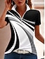 Dames T-shirt Vetoketju Kwart ritssluiting Grafisch Geometrisch Kleurenblok Vintage Tropisch Hawaii Korte mouw Hoge nek Normale tops Strand bruiloft Dagelijks Sport blauw Wit Blozend Roze Rood Oranje