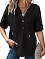 Damesblouse van 100% katoen met knoopsluiting, effen kleur, basic, casual, 3/4 mouwen, V-hals, regular top, geschikt voor dagelijks gebruik, zwart, wit, rood, kaki, zomer