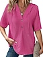 Dames Blouse Overhemd van imitatie linnen Knop Effen Kleur Dagelijks Stijlvol Basic 3/4 mouw V-hals Normale tops Dagelijks blauw Wit Geel Groen Grijs Zomer Lente Herfst