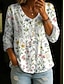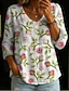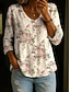 Dames Blouse Linnenachtig Ademend Lichtgewicht Tunikavorm V-hals Lange Mouw Boho Casual Tops Bloemige Grafiek Elegante Vintage Dagelijkse Reguliere Tops Dagelijks Draag Print Wit Roze Blauw