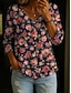 Dames Blouse V Hals Gelaagde Ruffle Mouw Tops Bloem Grafisch Bohemie Vintage Dagelijks 3/4 Mouw Regulieren Tops Dagelijks Vakantie Kleding Print Roze Rood Blauw Lucht Blauw Oranje Zomer Lente Herfst