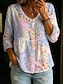 Dames Blouse Linnenachtig Ademend Lichtgewicht Tuniek V-hals Lange Mouw Boho Casual Tops 3D Print Grafisch Basis Reguliere Tops Dagelijkse Knopen Print Roze Lichtblauw