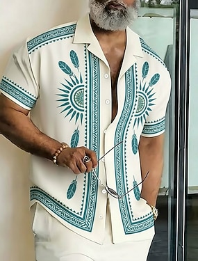 Voor heren Indiaan Boho Overhemd Hawaiiaans overhemd Overhemd met knopen Korte mouw Hawaii Vakantie Feestdagen Strand Kleding Zomer Lente Strijkijzer 3D-afdrukken shirts met kraag blauw