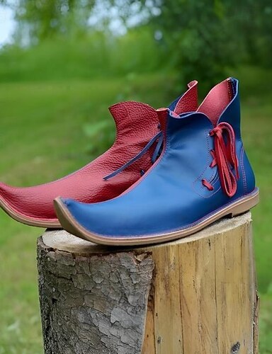 Vintage Middeleeuws Renaissance Schoenen Laarzen Platte jazzlaarzen Fee Ranger Elf Kleurenblok Kostuum Voor heren Dames Keltisch Piraat Fantasie Halloween Carnaval Maskerade Casual / Dagelijks LARP
