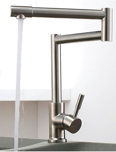 keukenkraan, moderne stijl roestvrij staal enkel handvat een gat nikkel geborsteld potvuller badrand gemonteerde retro keukenkranen met warm en koud water