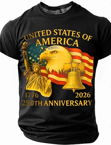 4 juli 2026 250e herdenking Mannen 3D Print Amerikaanse Vlag Crew Neck Korte Mouwen T-Shirt Dagelijks Straat
