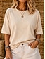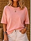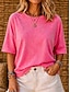 Dames T-shirt T-shirts Effen Kleur Klassiek Casual Korte mouw Strakke ronde hals Normale tops Dagelijks Uitgaan Lichtkaki Zwart Wit Blozend Roze Rood Zomer Lente