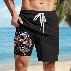 Independence Day Voor heren Doodskoppen 4 juli, 250e verjaardag van de VS Amerikaanse vlag Gevoerde shorts 2 in 1 zwemshorts Lange zwembroeken Medium Taille Feestdagen Zijzakken Met compressievoering