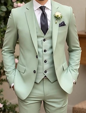 Heren Smoking Feestpakken Strand bruiloft Lente bruiloft Lichtgroen Lente zomer Pak Ingesneden revers Effen Standaard pasvorm 3-delige set Enkele rij knopen met twee knopen