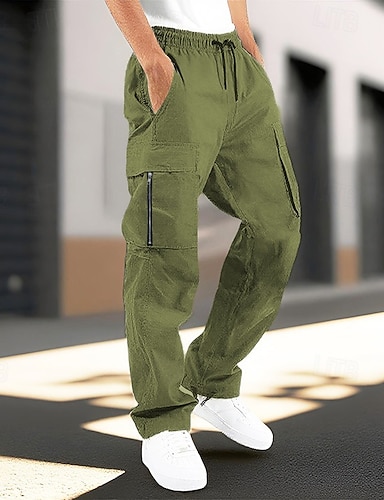 Voor heren Joggingbroeken Jogger Broek Trekkoord Elastische taille Meerdere zakken Effen Comfort Ademend Casual Dagelijks Feestdagen Sport Modieus Leger groen Zwart