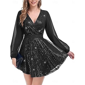 Dames Mini-jurk Zwarte jurk Jurk met lovertjes Cocktail jurk Formele jurk Modieus Modern Avond Feest Cocktailparty Normale pasvorm Effen Lange mouw Strakke ronde hals Zwart Lente Herfst