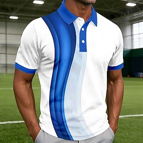 Voor heren Meetkundig Lijn Sport Poloshirts Korte mouw Poloshirt Overhemden met kraag Casual Sportkleding Alledaagse kleding 3D-afdrukken Knop Lente zomer blauw Blozend Roze Paars