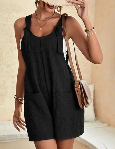 Dames Babypakje Actief Effen Kleur Mouwloos Baggy korte broek U-hals Zak Dagelijks Vakantie Ruim Passend Zwart Lichtgroen Leger Groen Zomer