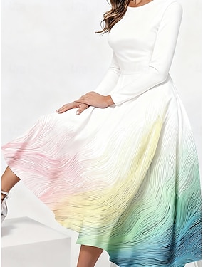 Dames Halflange jurk Jurk met print Modieus Modern Dagelijks Kantoor Feestdagen Normale pasvorm Grafisch Lange mouw Strakke ronde hals Blozen roze Wit Goud Lente Herfst Winter