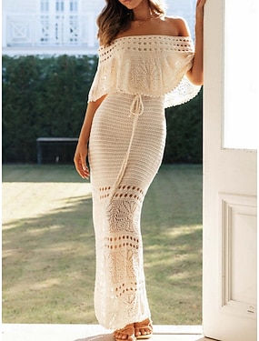 Dames Halflange jurk Witte jurk Casual jurk Elegant Modieus Modern Buiten Vakantie Uitgaan Normale pasvorm Effen Korte mouw Schouderafhangend Wit Blozend Roze Zomer Lente