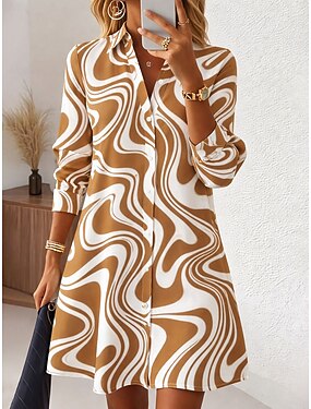 Dames Knielengte jurk Shirtjurk Vakantie Verjaardag Casual Strand Normale pasvorm Grafisch Abstract Lange mouw Revers Zwart Rood Paars Khaki Zomer Lente